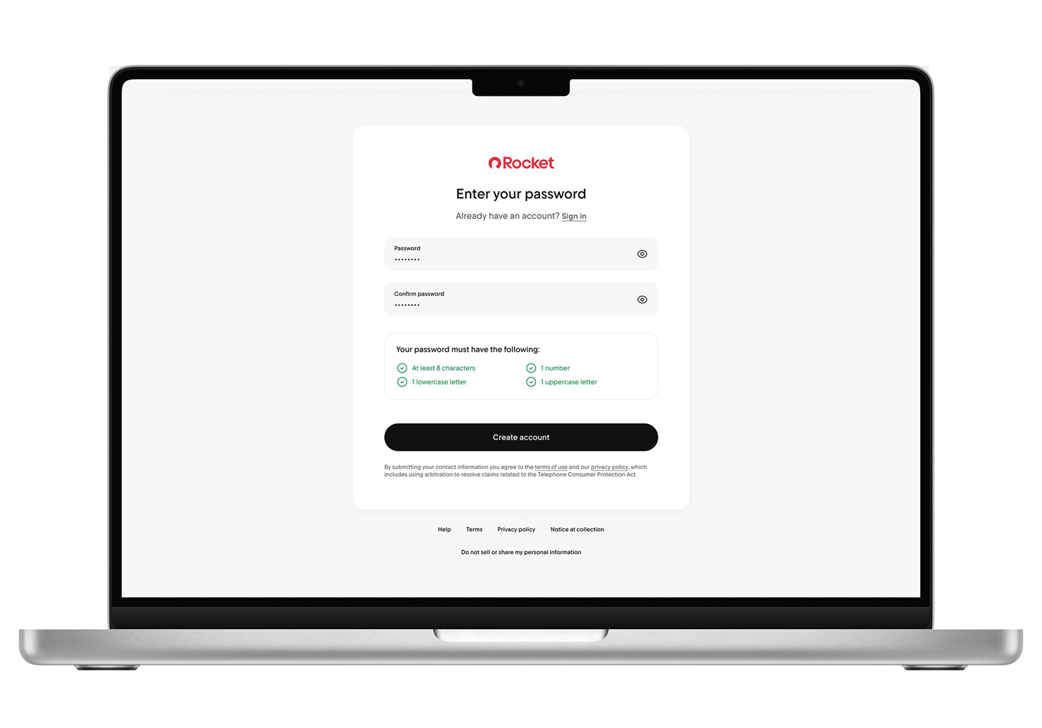 I also redesigned the account creation experience by updating the layout with new Design System components. We replaced the "Show Password" link with an eye icon and introduced a cleaner, more modern version of the password requirements, reducing visual noise and improving overall clarity.