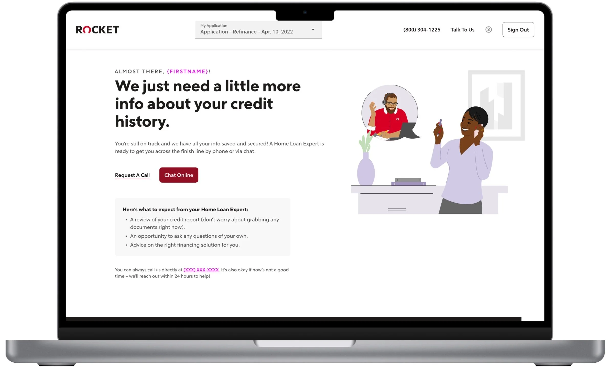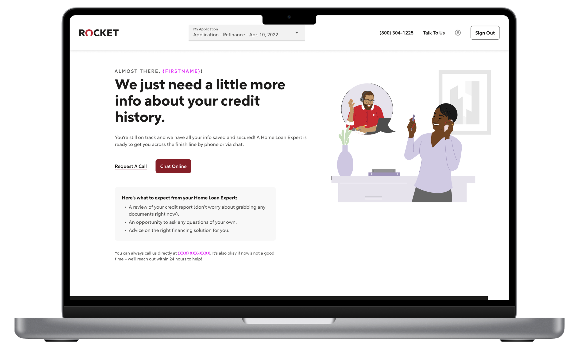 In the Rocket Mortgage application process, we require a substantial amount of information from our clients to facilitate their home refinancing or purchase. Occasionally, we encounter situations where we need to temporarily pause their application in order to obtain additional necessary information. This temporary pause in the digital mortgage application is known as a "pitstop."